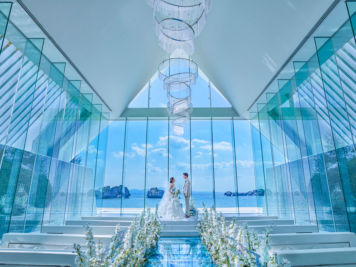 オーシャンビューの独立型チャペル「セントジョセフチャペル」でおふたりだけの沖縄ウエディングが叶います。