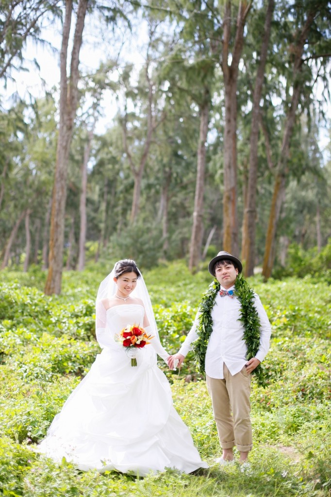 先日ワイマナロビーチでウェディングをされた、こちらのご新郎新婦様。