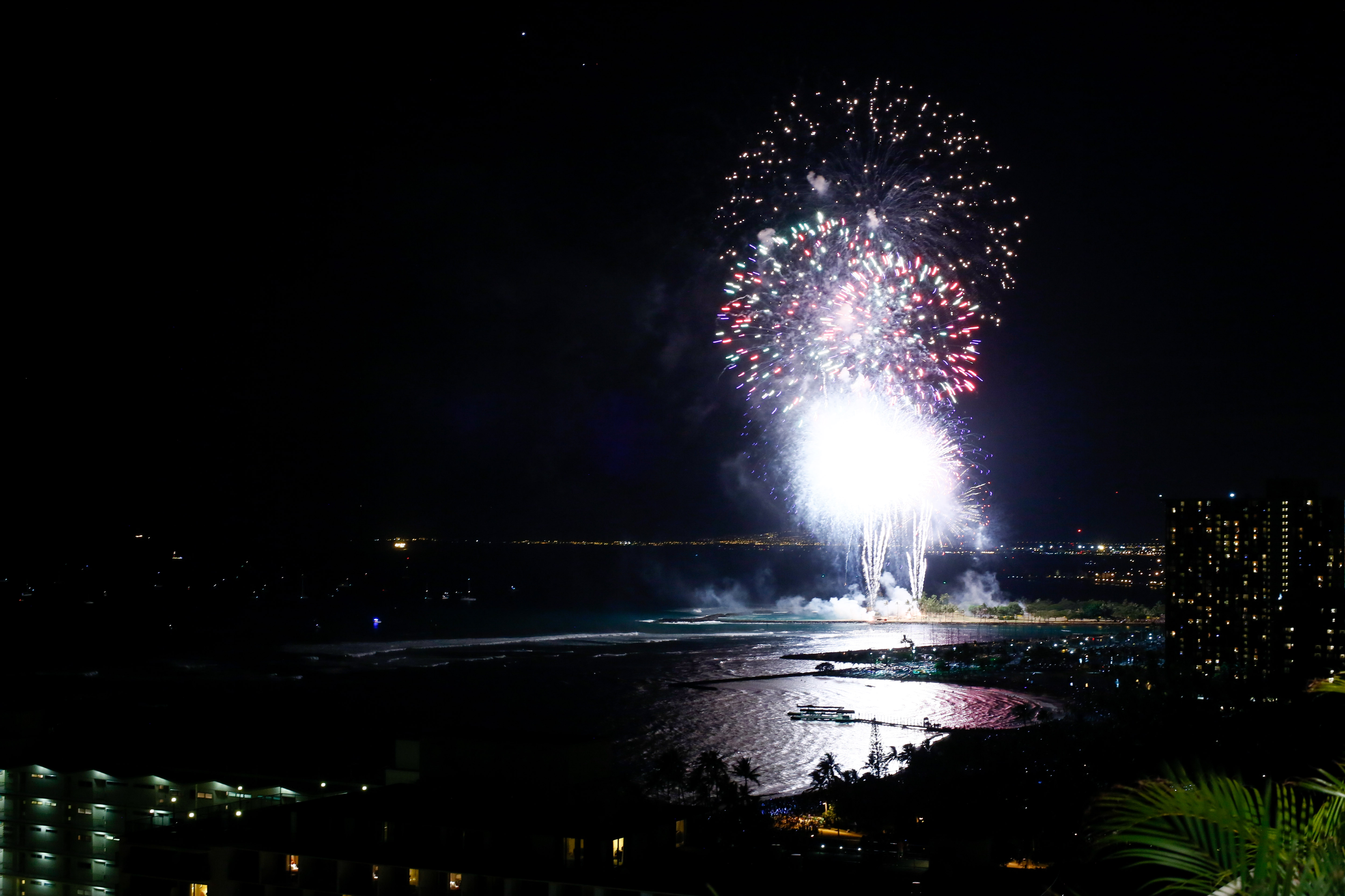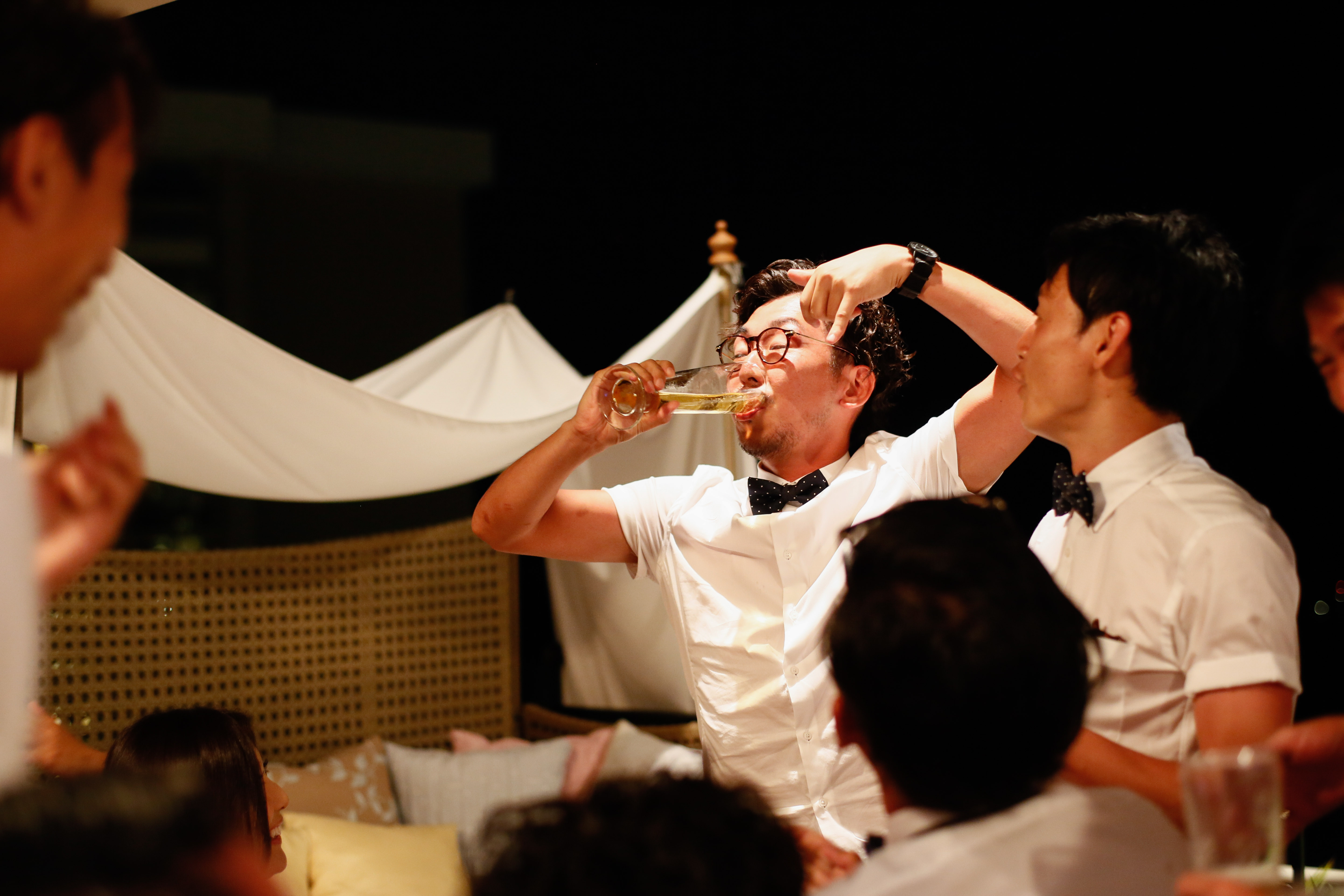 アメリカの独立記念日を祝う花火をバックに、シャンパンタワーの演出で盛り上がりも最高潮に!