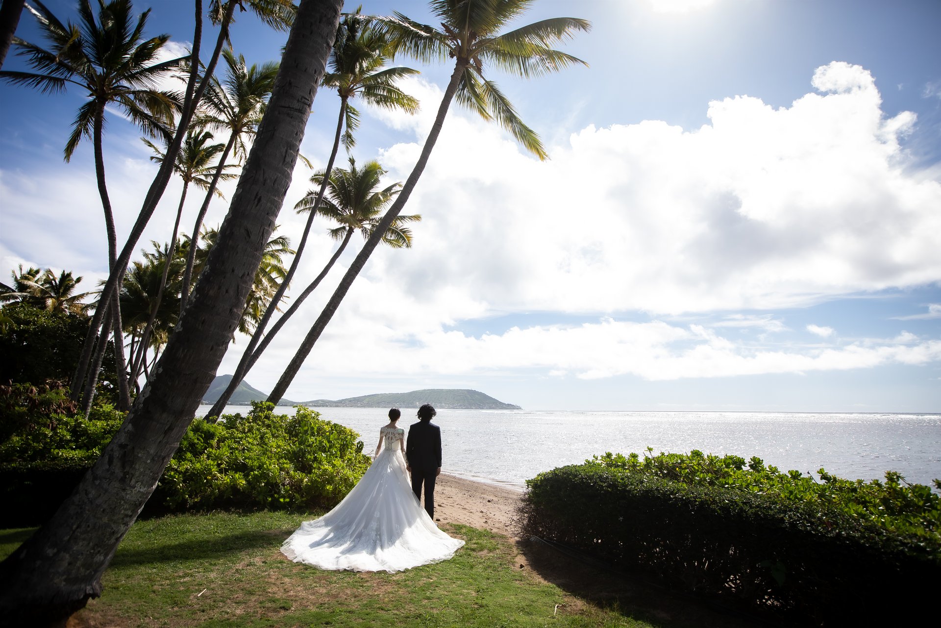 ガーデンからはココヘッドの景色が見え、ハワイの優しい風に包まれながら、永遠の愛を誓います…♡