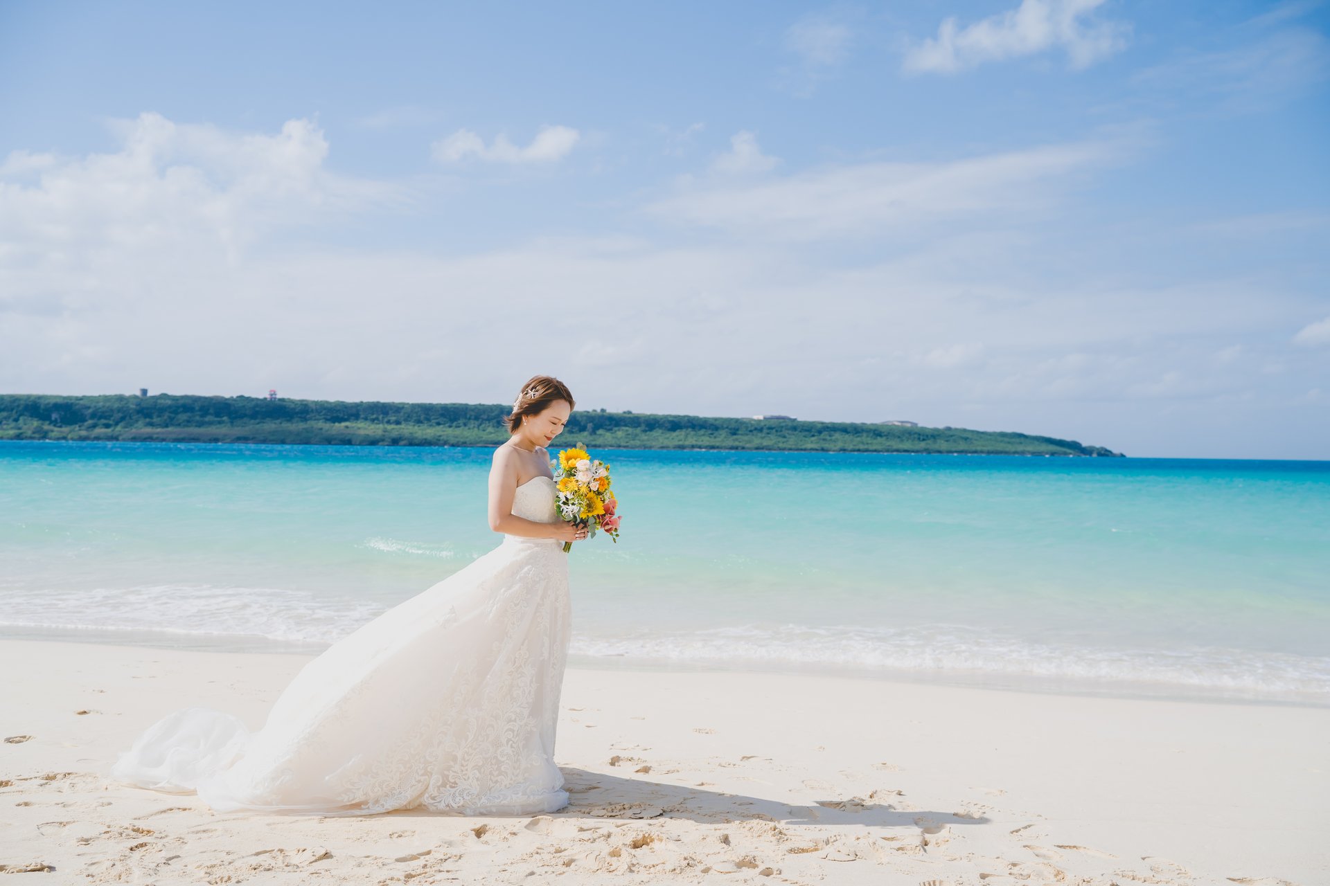 透明度が高く透き通った海と白い砂浜が広がるビーチでのフォトウエディングが叶います˖✧°