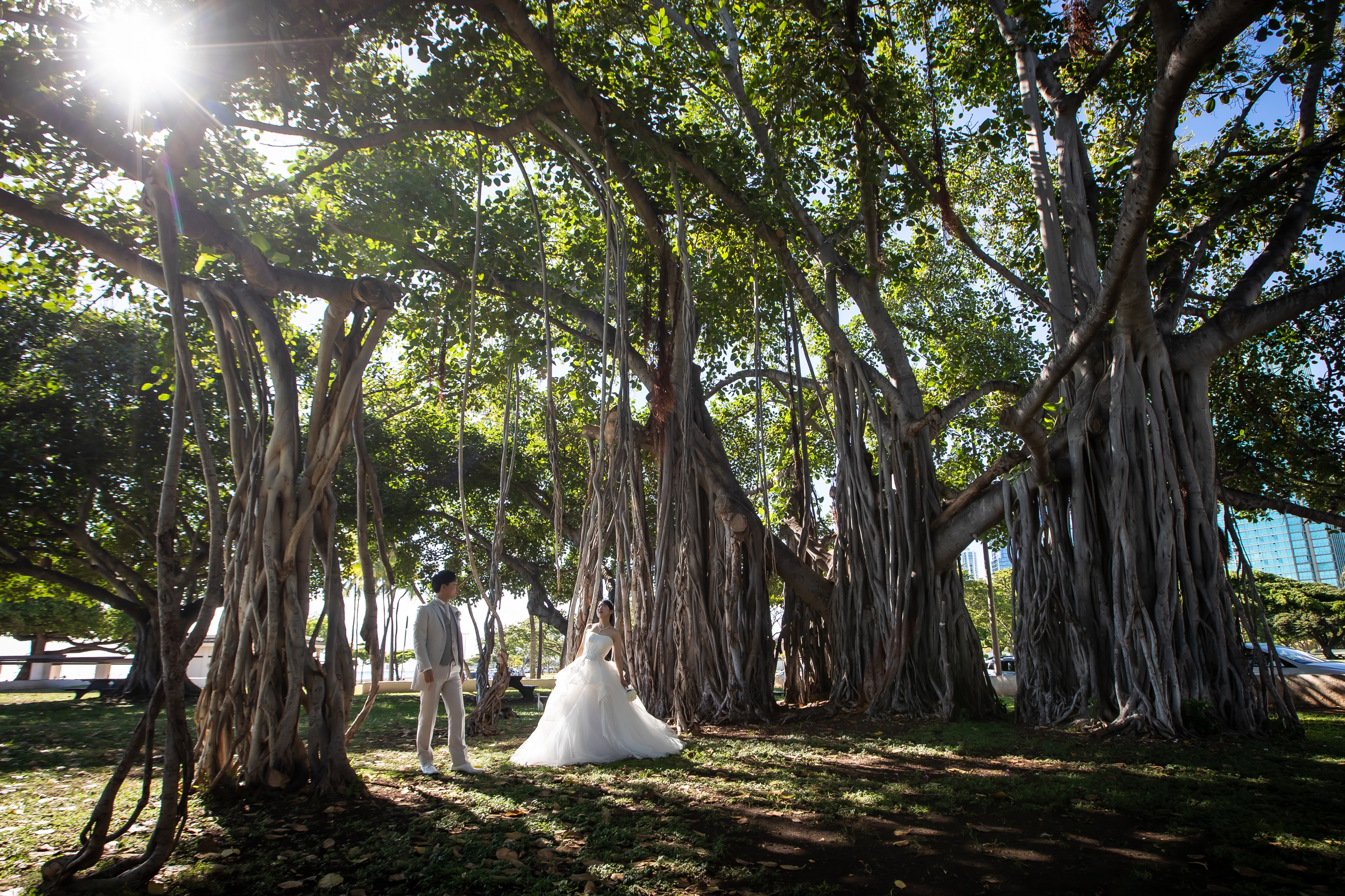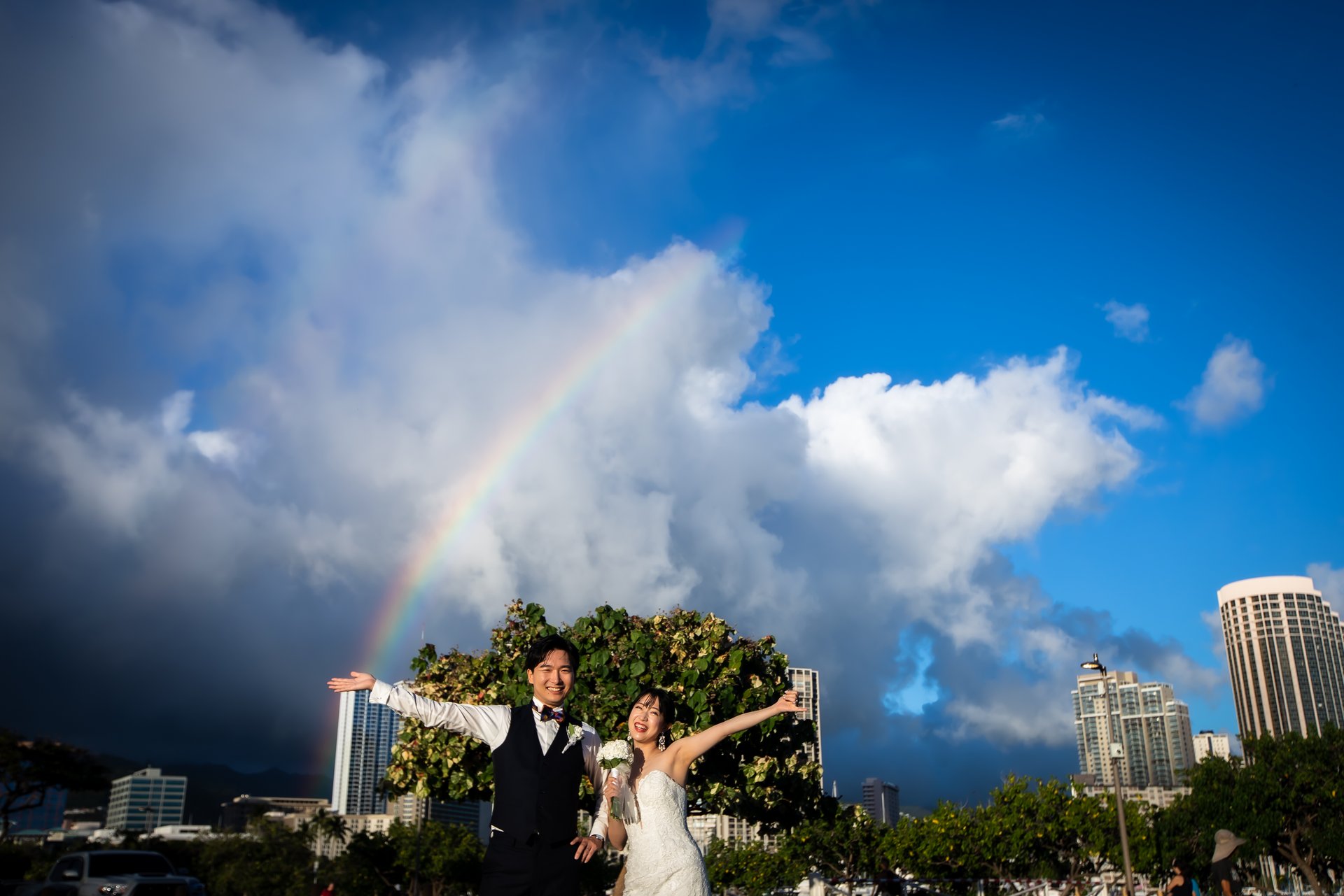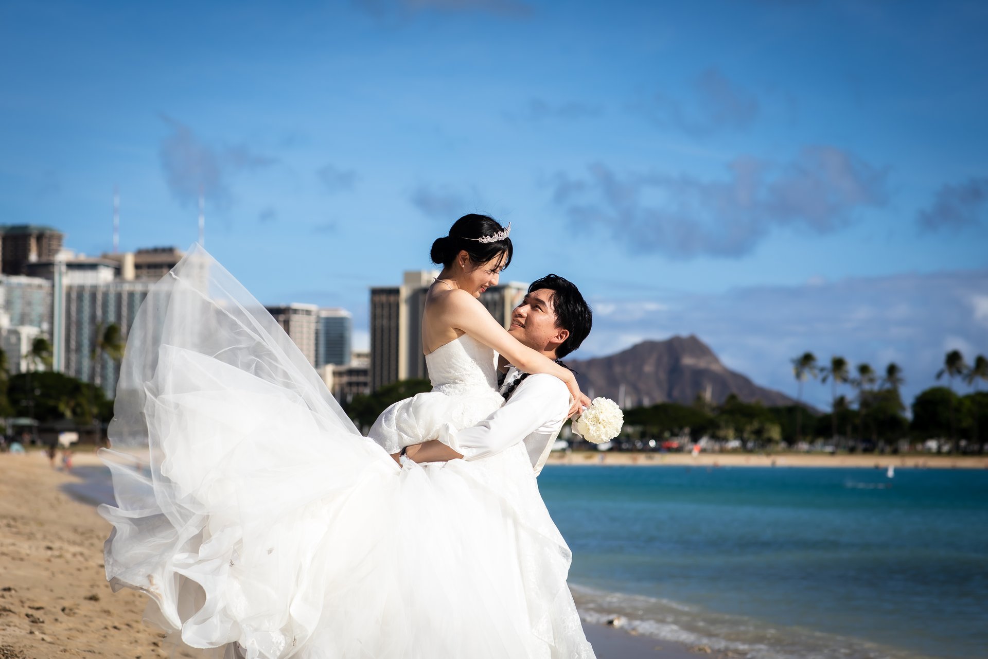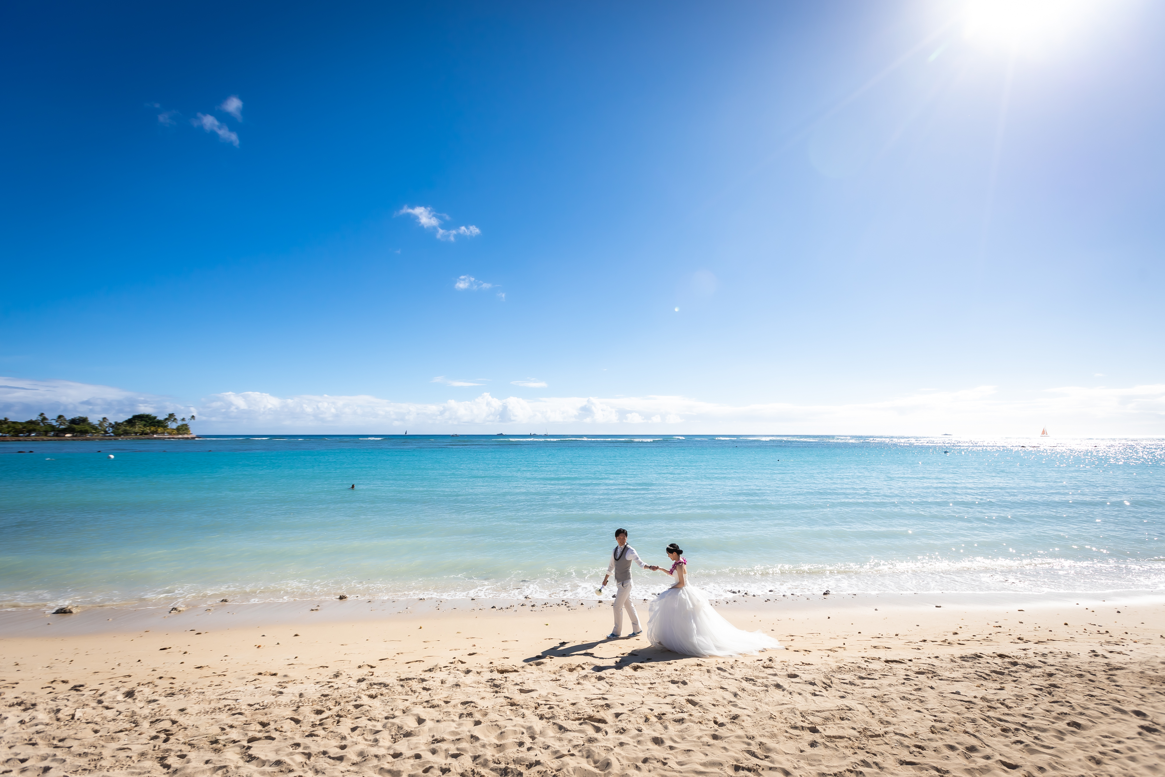 お昼間はワイキキの街並みやダイヤモンドヘッド、青い海やグリーンをバックにした