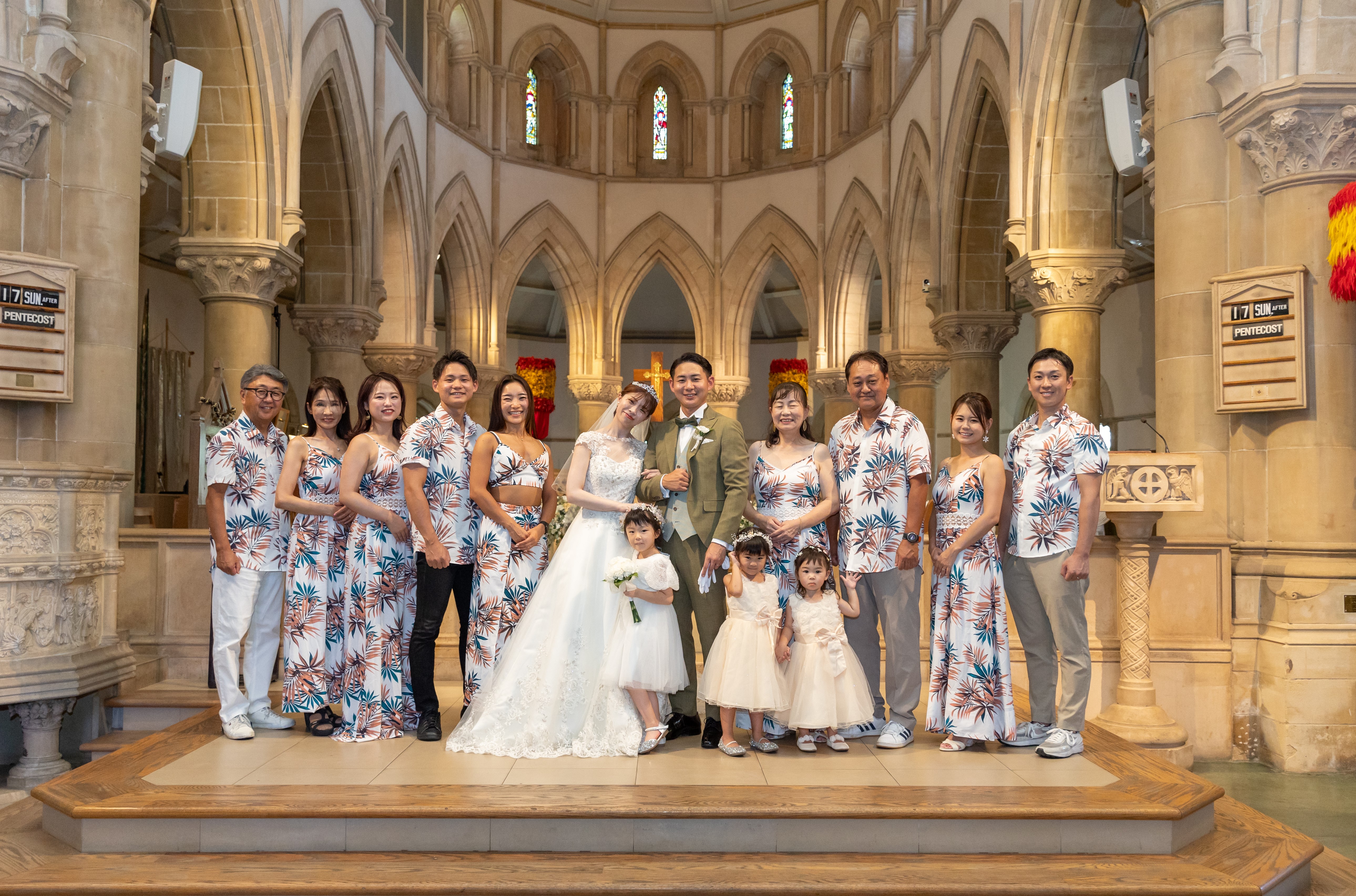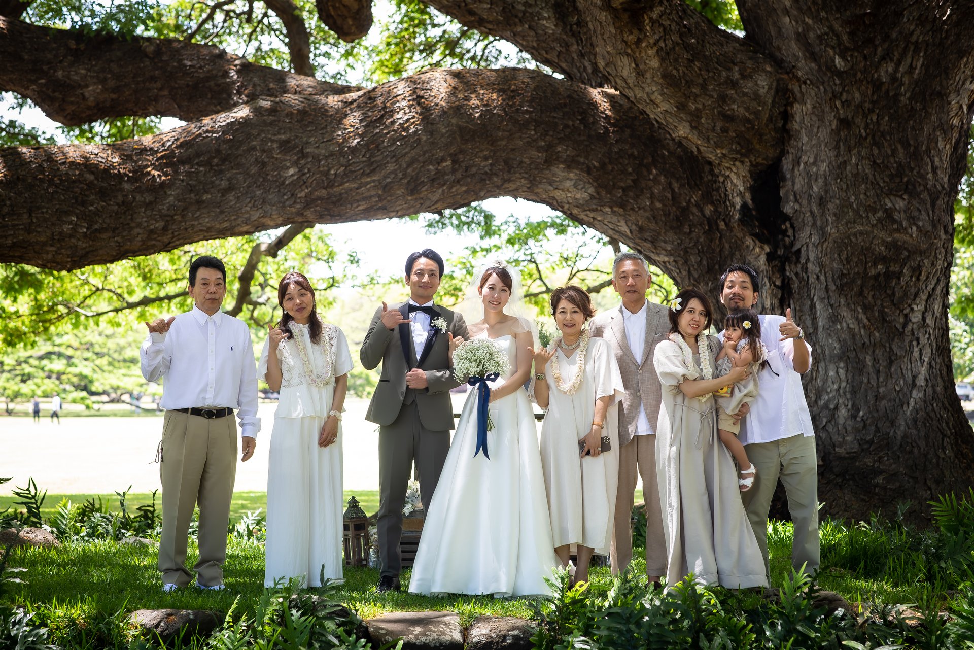 アロハシャツはハワイの正装でもあるので、結婚式にもふさわしい服装です。