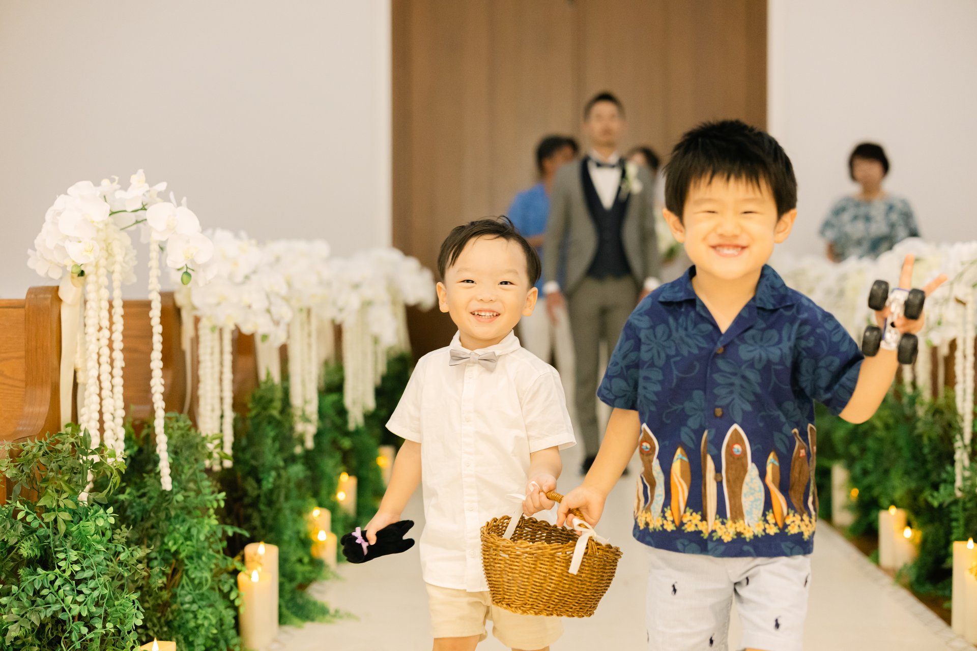 お二人の大切な指輪は可愛いリングボーイ達が運んでくれました💍