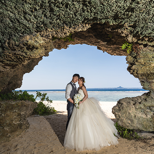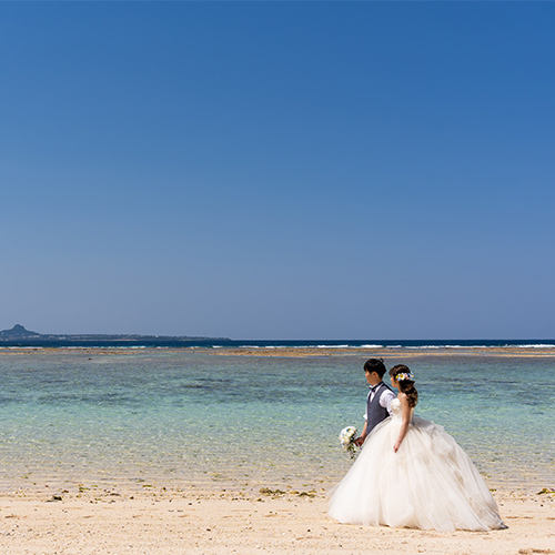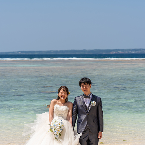 沖縄本島のビーチの中でも、美しい白い砂浜に透明度の高いエメラルドグリーンの海が南国らしさ満点の<瀬底ビーチ>をご紹介させていただき、お二人ともにとても気に入ってくださった事を今でも覚えております*