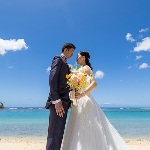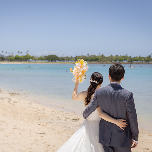 ご相談当初から明るい時間帯でのビーチ撮影をご希望いただいておりましたので、当日は素晴らしい晴天の中で、撮影を楽しんでいただけて本当に良かったです♪