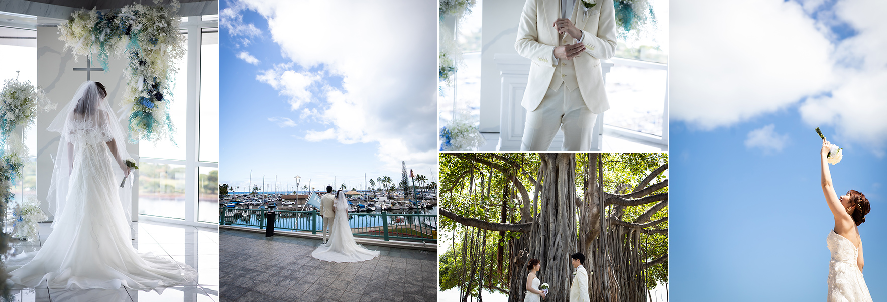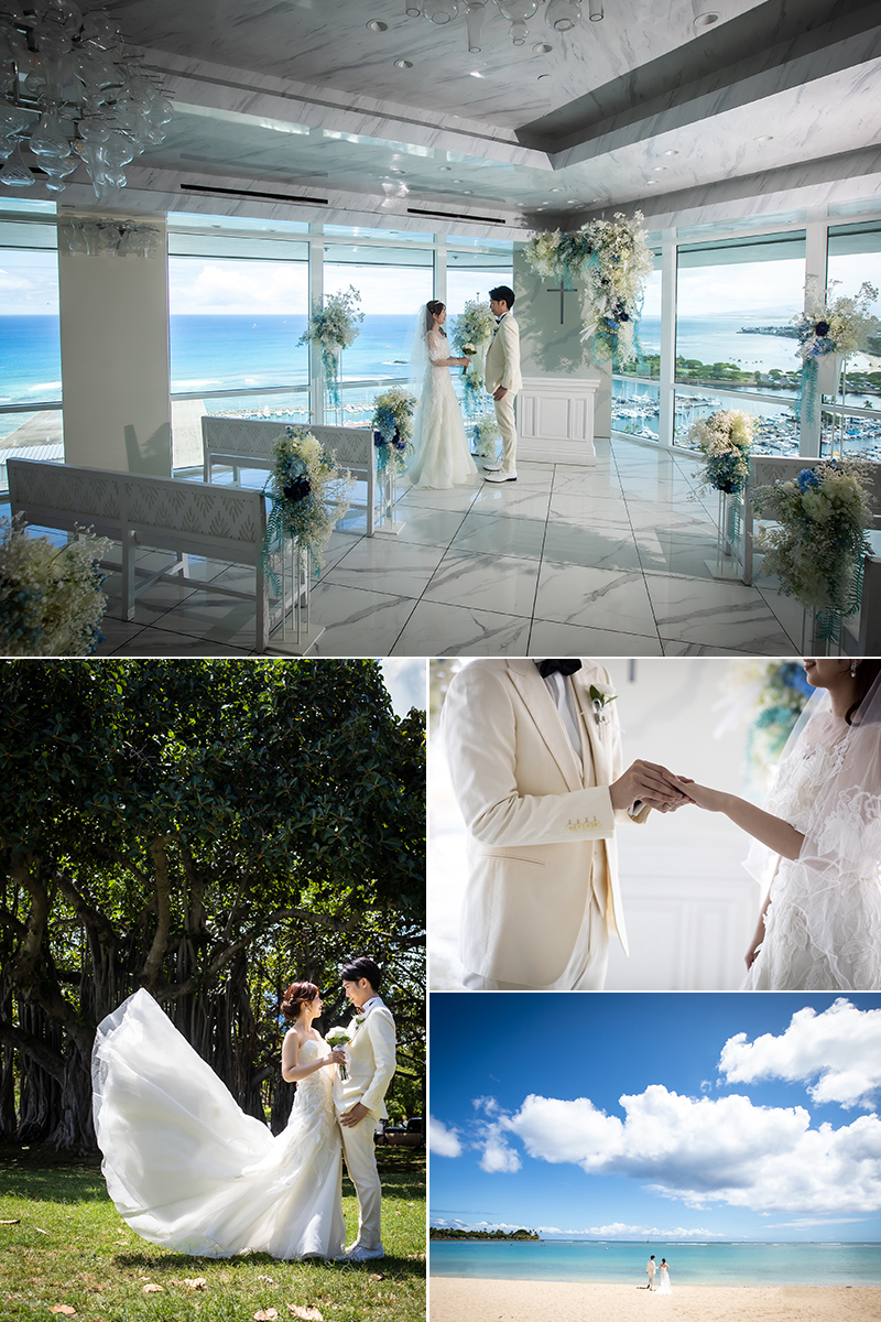 おふたりにお選びいただいた撮影ロケーションはイリカイチャペルとワイキキ近郊ビーチ!