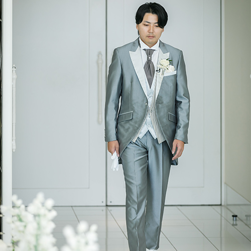 ご新郎Rさまはチャペルにお似合いの光沢のあるグレーのタキシード、ご新婦様のボリュームのあるドレスと相性ばっちりでした◎
