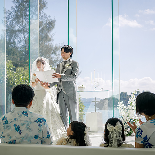 セントジョセフチャペルは目の前に広がる青空と青い海、見えるものすべてが非日常を感じていただけるロケーションです!