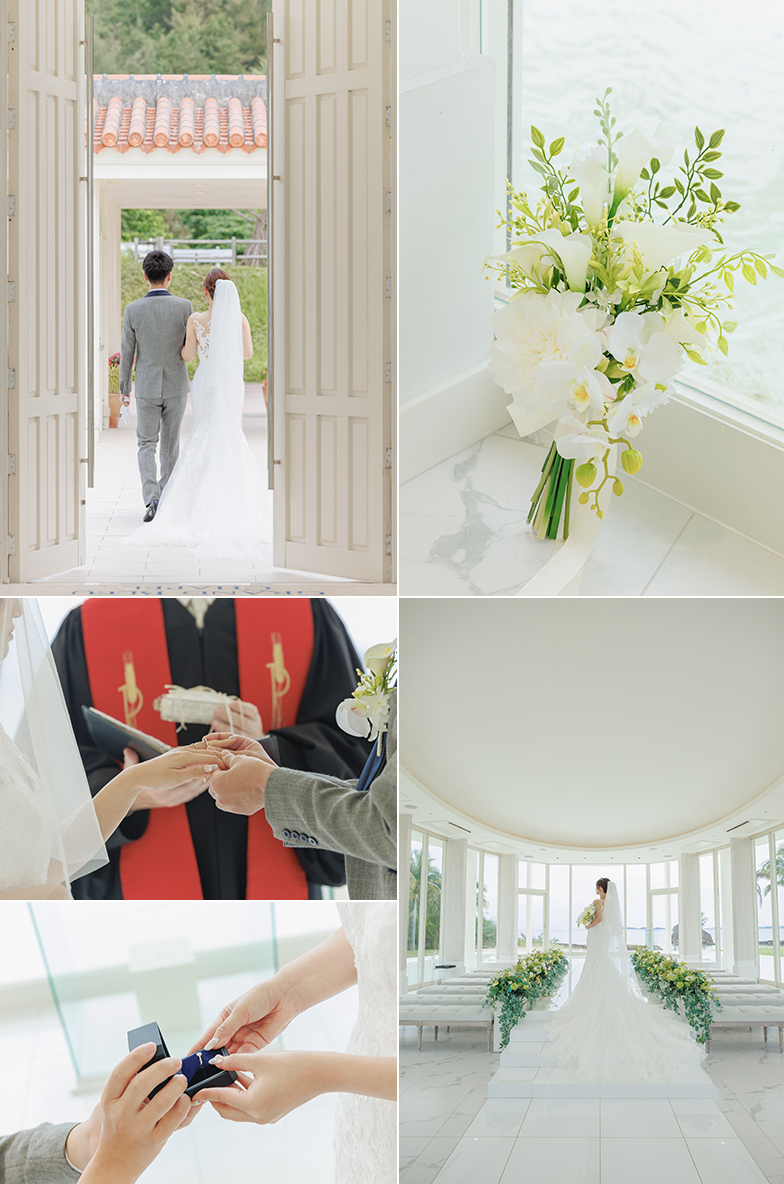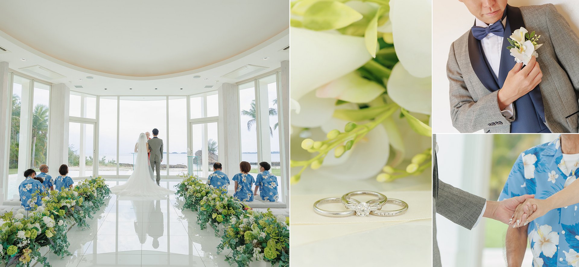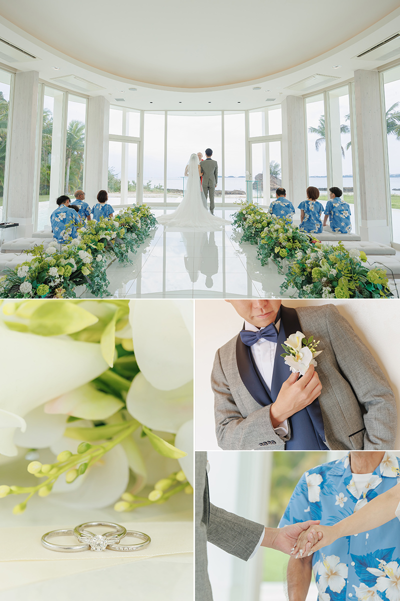 最初にご来店された時はハワイと沖縄で悩んでいらっしゃいましたが、ゲスト様の参列しやすい沖縄を選ばれました*【グランブルーチャペル】はリゾートホテルの敷地内にございますので、皆様と一緒に宿泊もお楽しみいただけます♪