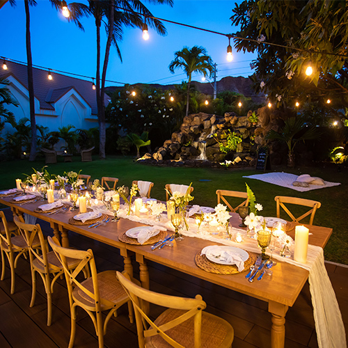 おふたりにお選びいただいたパーティ会場は「アイネスヴィラノッツェワイキキレイア」のガーデンパーティ!