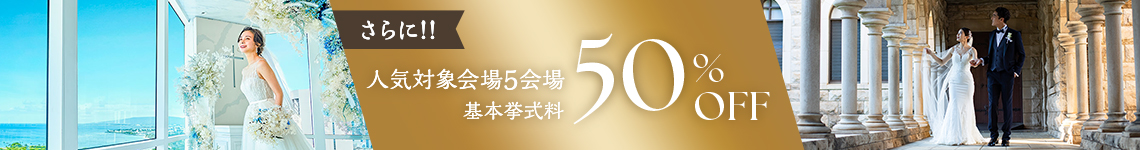 さらに対象会場は50%OFFに。約50万円以上の特典が今ならプレゼント!!