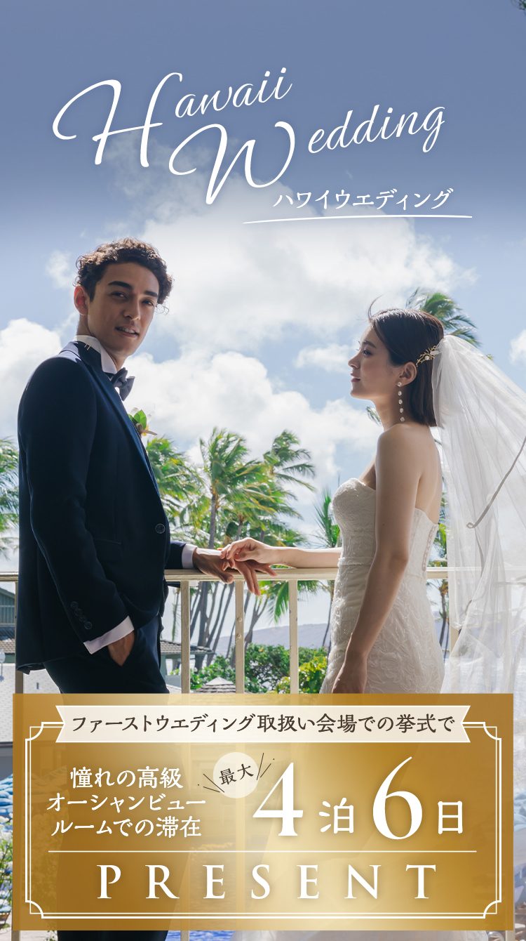 ファーストウエディング全てのハワイ取扱会場での挙式をお申込みいただくと